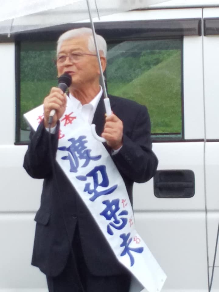渡辺氏は約40人の聴衆に囲まれて第一声をあげ、「農業守れの思いが自分の原点だ。地域再建、安倍政権の悪政から市民の暮らしを守るために、引き続き頑張らせてほしい」と訴えました。市民みなさんの願いをまっすぐ届けて、公約実現に全力を尽くす決意です。