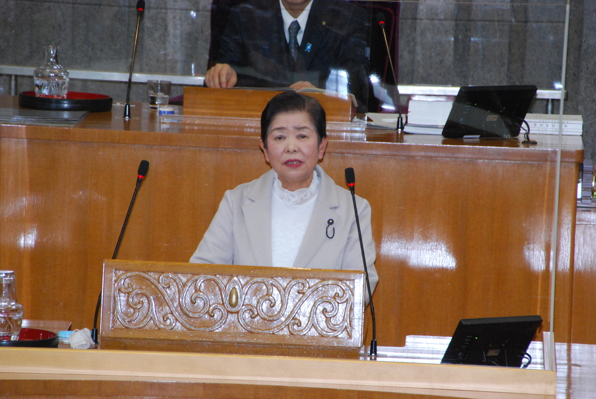 12月14日の県議会で、日本共産党の宮本しづえ県議が一般質問に立ちました。