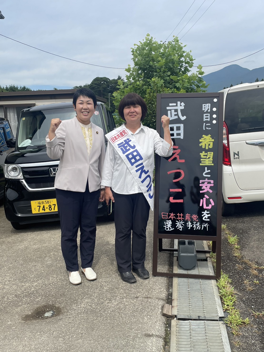 8月6日投票の大玉村議選では、日本共産党は須藤ぐんぞう(現)、武田えつこ(現)の2議席をめざして奮闘しています。